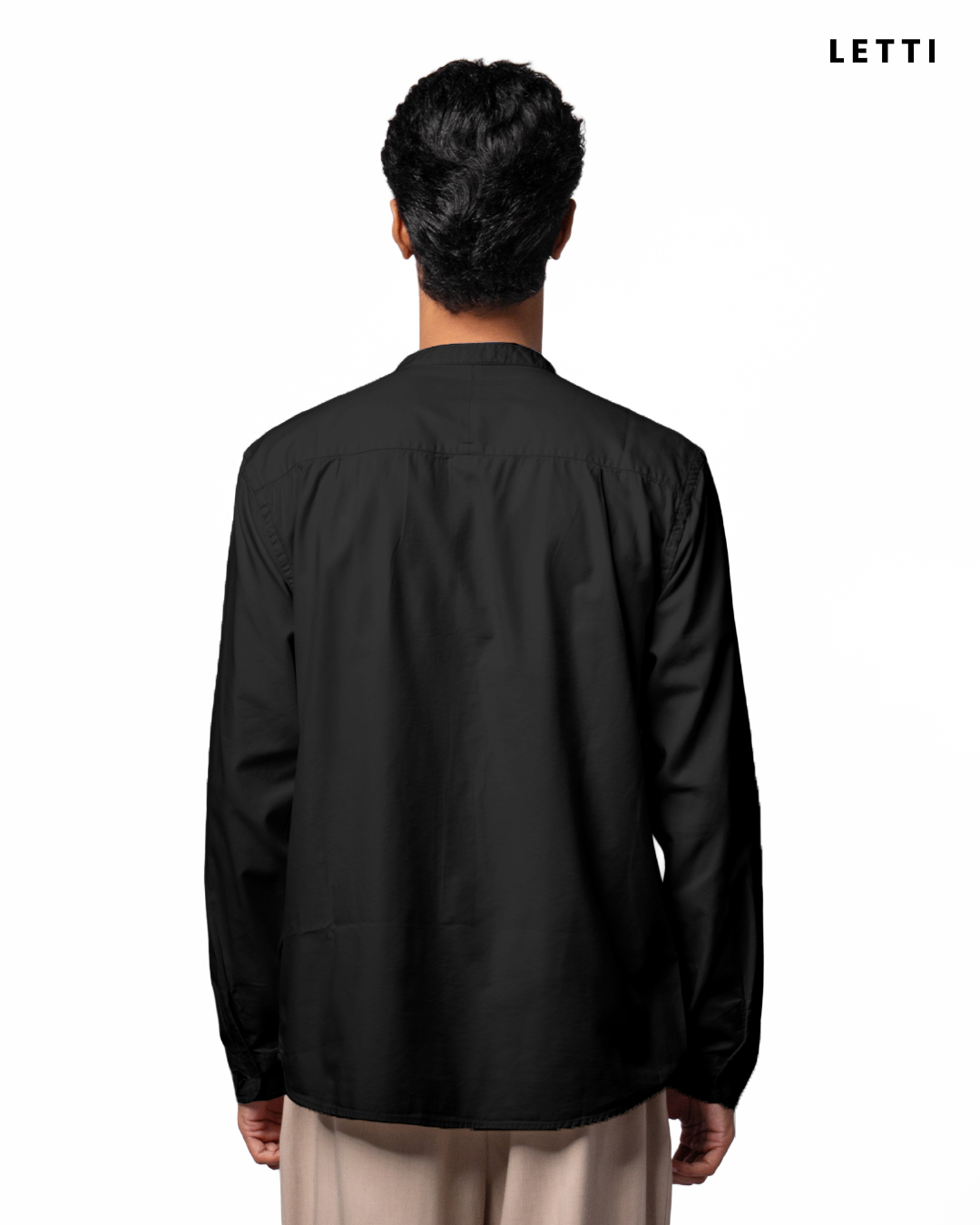Kerah shanghai yang berdiri tenang di leher, memberi garis rapi yang tak memaksa. Empat kancing terbuka di bagian atas memberi ruang untuk napas dan gerak, seolah membiarkan kesejukan masuk perlahan. Plaket tersembunyi menjaga tampilan tetap clean, sementara bahan katun premium menyentuh kulit dengan ringan, nyaman sepanjang hari.