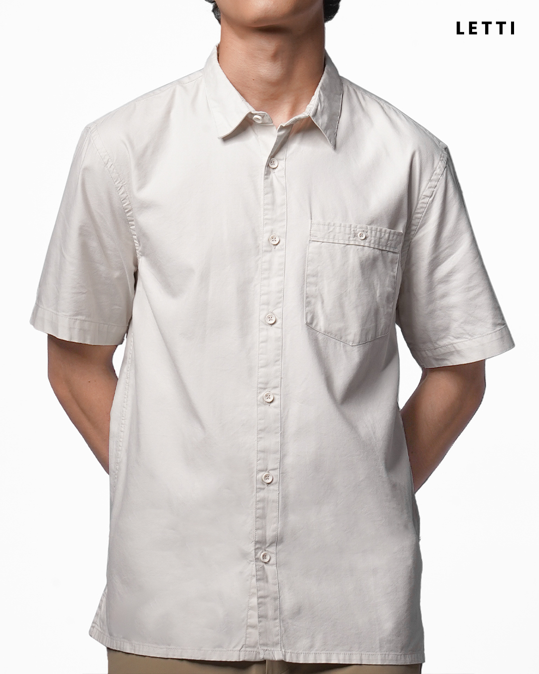 - Kemeja lengan pendek pria berbahan katun premium yang ringan, adem, dan nyaman dipakai seharian